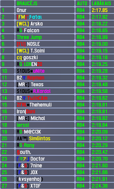 Last RB4 race won by: S1DUS*R.Kardol (261st RTFR - FE Black Alternative Rev.)